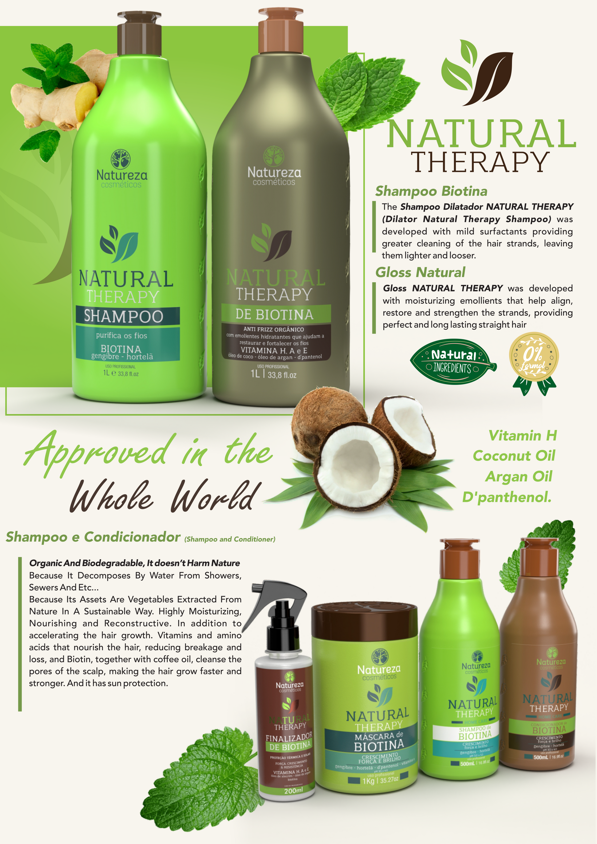 Transform frizz into sleek, shiny hair with the Natureza Cosmeticos Natural Therapy Escova de Biotina Kit. This professional-grade kit combines a biotin-infused shampoo with a powerful straightening formula to deliver long-lasting smoothness and shine. Ideal for salon use, it works on all hair types, including natural, processed, fine, or coarse textures.